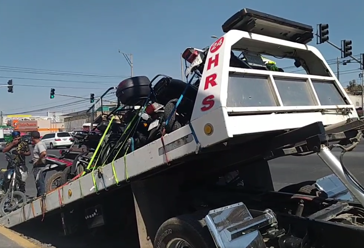 En Avenida Concepción frente a Villas de la Hacienda personal de Movilidad de Jalisco en compañía de varias grúas se estaban llevando varias motocicletas, algunas estaban estacionadas. Las motocicletas no tenían reporte de robo, pues no hay ningun detenido, además a todas las personas le van a cobrar la grúa de manera individual, siendo que todos los involucrados deberían pagarlas entre todos.
