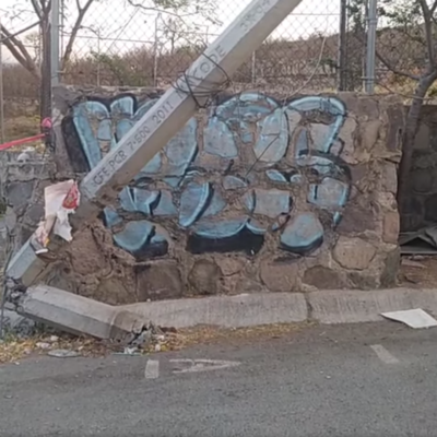 Tumba poste de CFE en escuela Camioneta RAM 4000 blanca de 3 y media toneladas JM96673. La escuela está en Lomas del Sur calle Loma