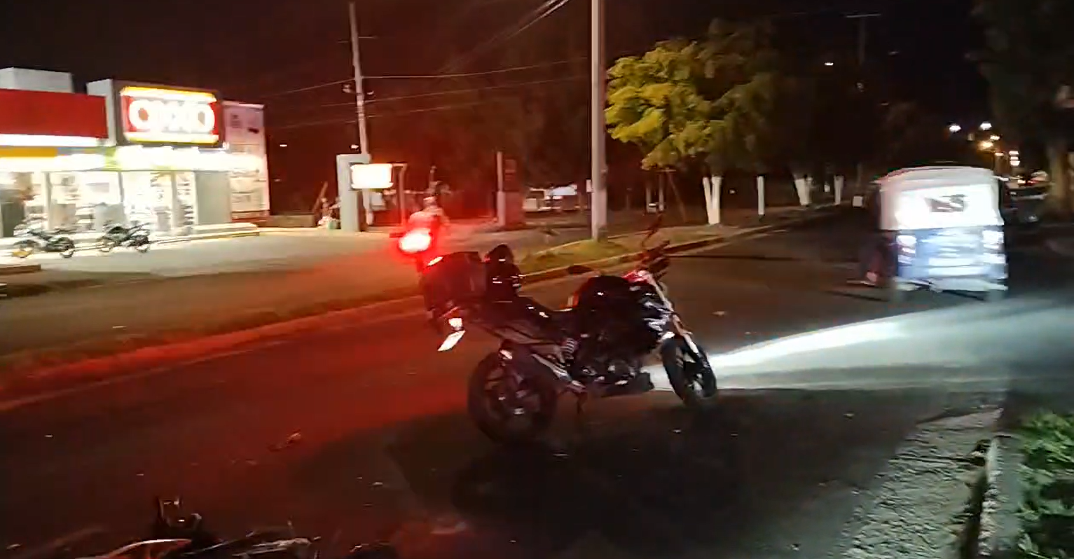 Conductor a exceso de velocidad y con aliento alcohólico sE pasa el semáforo en rojo en Av Colón y Av Nuevo México, se lleva a tres jovencitos que venían a bordo de una motocicleta, los tres portaban casco, las lesiones fueron en extremidades inferiores, uno de ellos con 16 años.