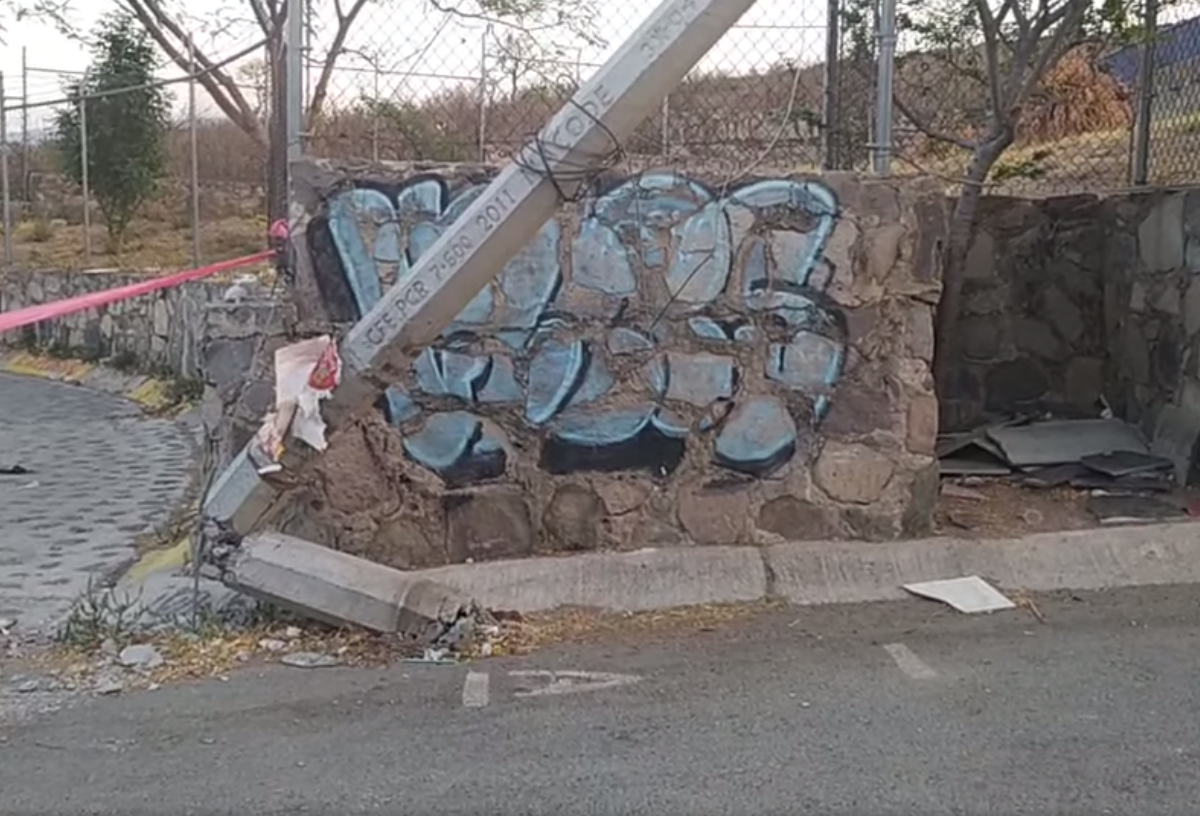 Tumba poste de CFE en escuela Camioneta RAM 4000 blanca de 3 y media toneladas JM96673. La escuela está en Lomas del Sur calle Loma de Astorga cruza con Loma de Roma, no suspenden actividades niños peligran.